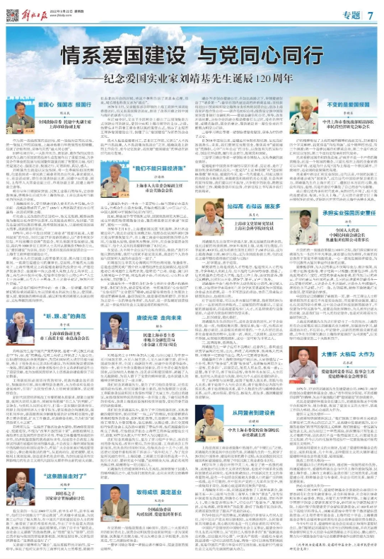 情系爱国建设 与党同心同行 ——纪念爱国实业家刘靖基先生诞辰120周年