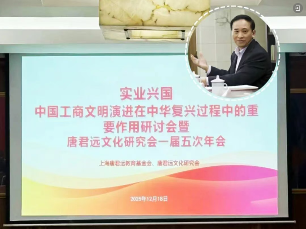 2025年12月18日,“实业兴国:中国工商文明演进在中华复兴过程中的重要作用”研讨会暨唐君远文化研究会一届五次年会在上海唐君远教育基金会会址顺利召开。上海市委统战部原部长、复旦大学原校长王生洪,上海爱建集团股份有限公司党委书记、副董事长、上海工商界爱国建设特种基金会理事长范永进,上海唐君远教育基金会理事、唐君远文化研究会学术委员会主任王武等来自学术界和企业界的领导、专家学者及20余位唐君远文化研究会会员参加年会,共同围绕新时代工商文明的传承、创新与人才培养等议题展开深入研讨。会议由上海唐君远教育基金会秘书长张伟主持。
