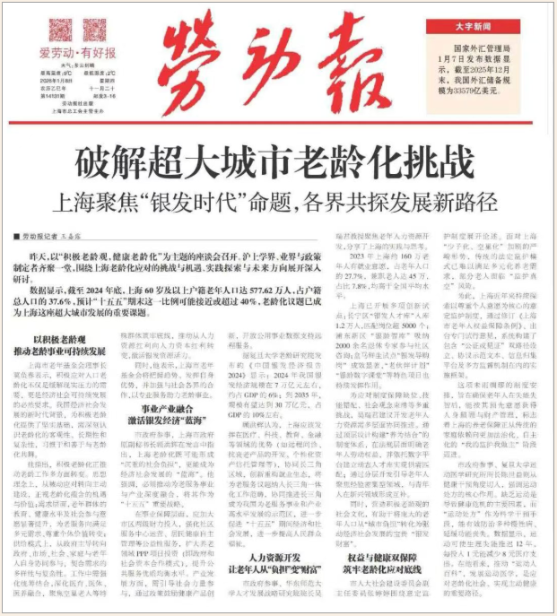 人口老龄化是时代赋予全社会的共同课题,积极应对人口老龄化既是国家战略,更是全社会的共同责任。上海作为我国深度老龄化的超大城市,探索一条契合超大城市发展规律的养老之路,亟需理念引领、实践创新与多方力量协同发力。