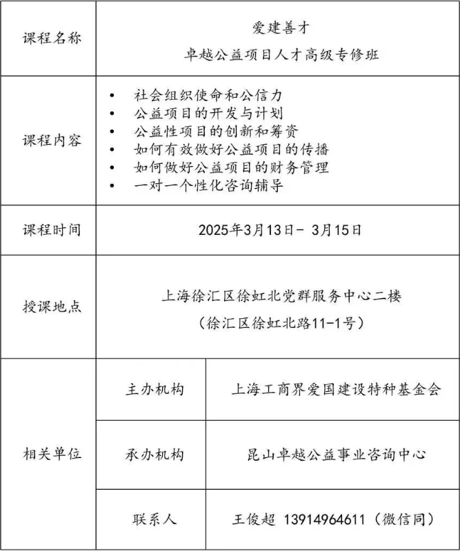 “爱建善才卓越公益项目人才高级专修班”的举办,不仅为公益人才提供了专业学习平台,也为推动社会组织高质量发展搭建了交流合作的桥梁。未来,随着公益人才培养机制不断完善,更多公益力量将在全国各地生根发芽,为社会进步贡献新的力量。
