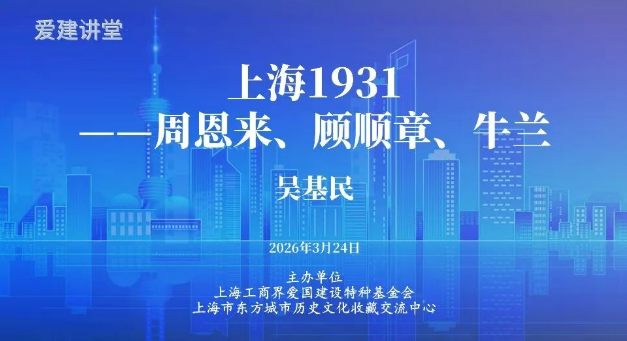 爱建讲堂 2026年3月24日下午,由上海工商界爱国建设特种基金会(简称“爱建特种基金会”)与上海市东方城市历史文化收藏交流中心联合主办的“爱建讲堂”第六讲在老上海茶馆举行。本次活动邀请上海文史馆馆员、上海社会科学院研究员熊月之讲述宋庆龄的传奇人生,以及上海作家协会会员、上海电视台总编室原主任吴基民作“上海,1931”专题讲座。两位专家对历史人物与重大事件展开深入解读,内容丰富、视角多元。