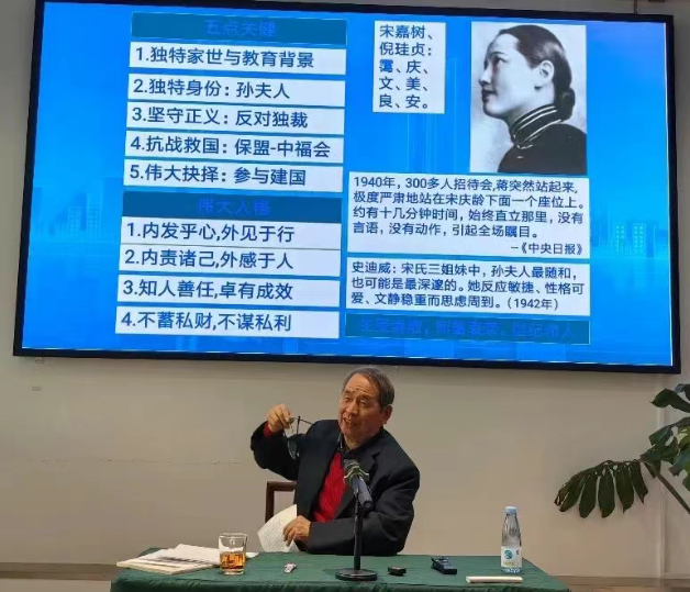 在主题讲座环节,熊月之围绕宋庆龄波澜壮阔的一生进行了系统而深入的讲述。他指出,宋庆龄是中华人民共和国的缔造者之一、国家名誉主席,伟大的爱国主义、民主主义、国际主义和共产主义战士,举世闻名的二十世纪的伟大女性,也是中国近现代史上一位具有深远影响的杰出女性,其人生轨迹始终与民族独立、社会进步和人民福祉紧密相连。宋庆龄出生于上海宋氏家族,在中西文化交汇的时代背景下成长,早年在中西女塾接受系统教育,开阔的视野与良好的教养,让她形成了独立、自信、坚韧而又温柔坚定的性格。