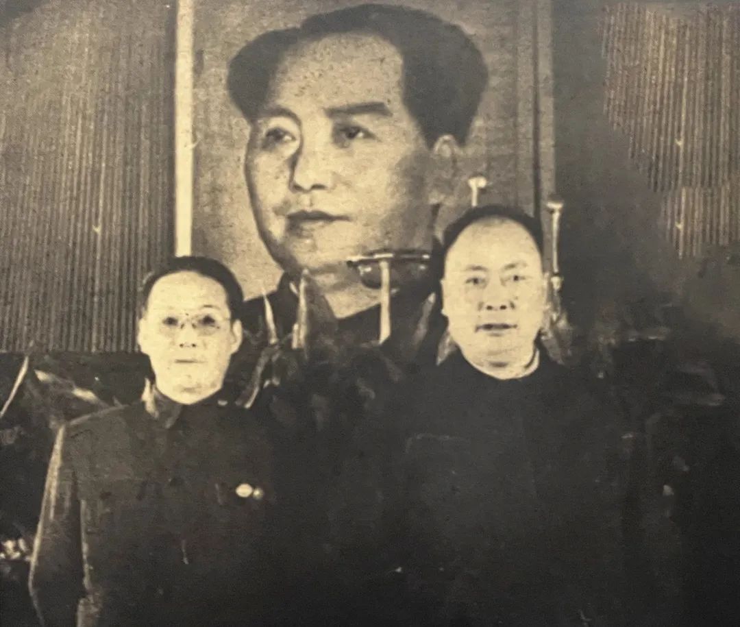 解放初期,上海市市长陈毅(右)、副市长潘汉年合影