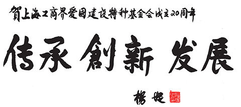 杨堤为上海工商界爱国建设特种基金会成立20周年题词
