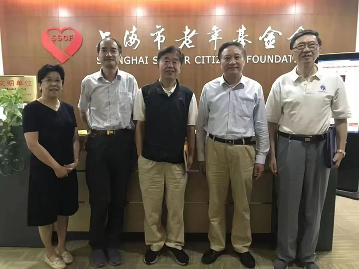 2021年9月7日,爱建特种基金会理事长范永进(右二)一行拜访上海市老年基金会理事长、上海市原副市长胡延照(中)