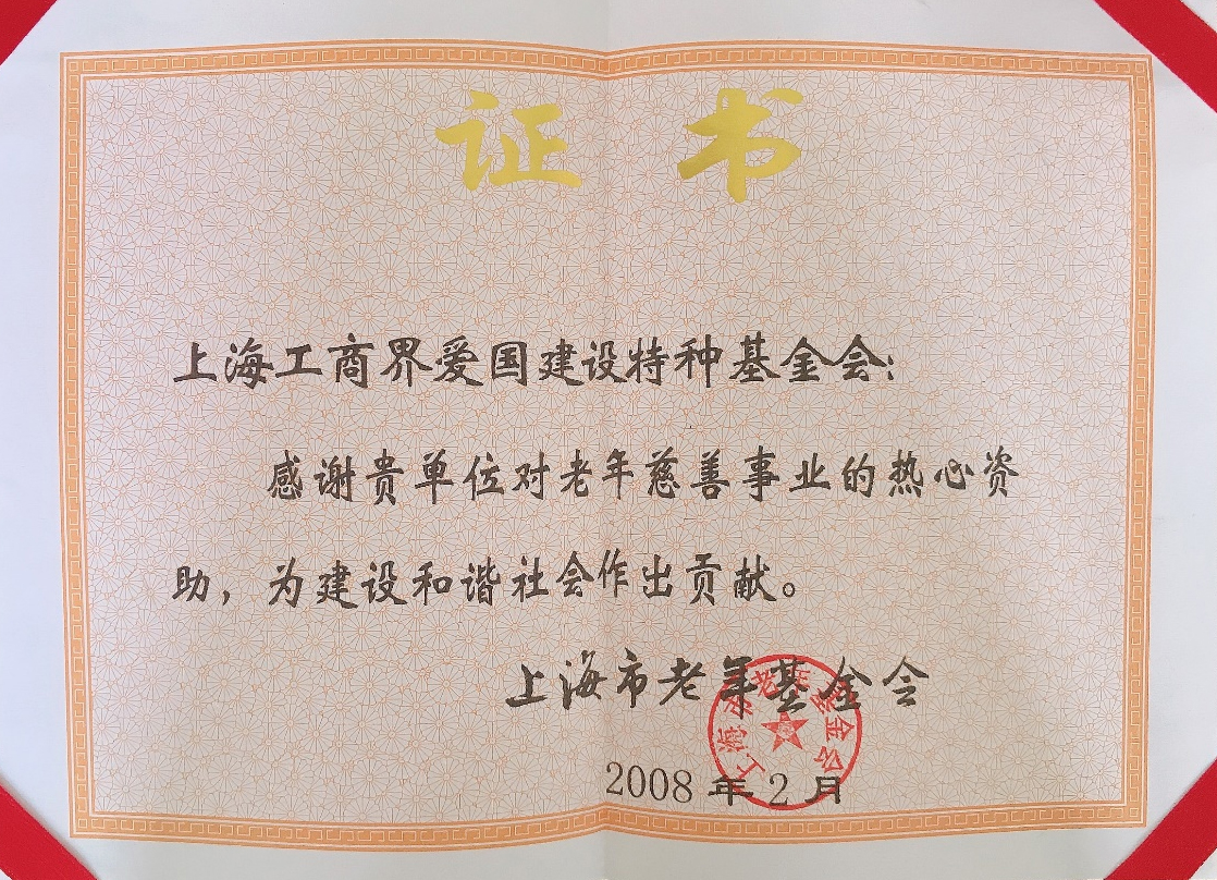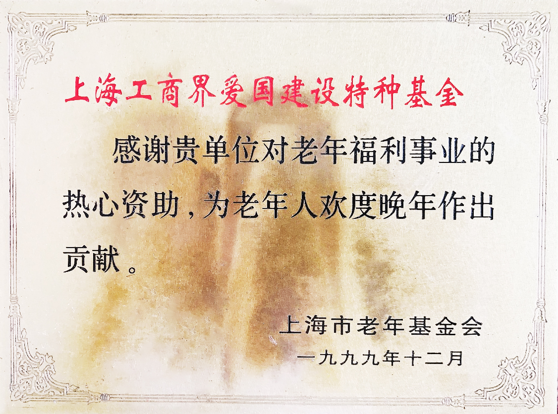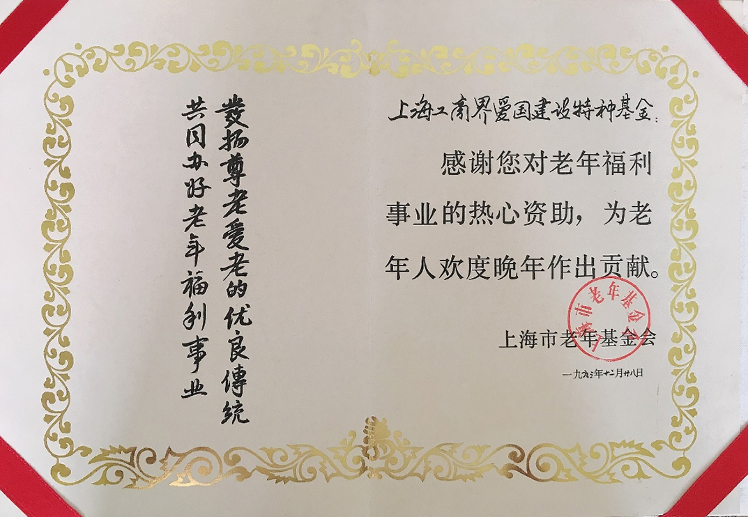 上海市老年基金会向爱建特种基金会颁发的部分捐赠证书、荣誉证书等