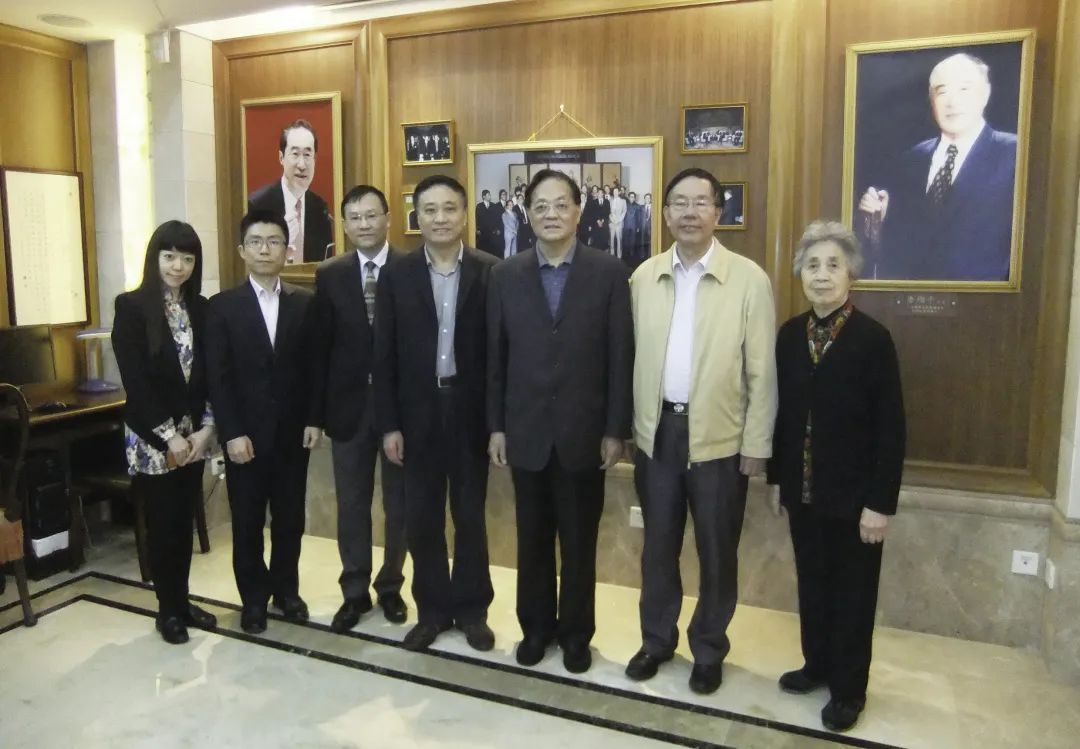 范永进(中)带队走访唐君远教育基金会,与王生洪会长(右三,原上海市委常委、统战部长,复旦大学校长)等沟通交流